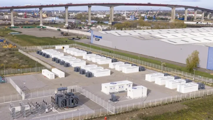 Les énormes blocs blancs visibles dans la zone industrielle portuaire de Nantes constituent le 2e plus grand parc de stockage d'énergie électrique par batteries (BESS) en France. « La construction a débuté à l’été 2024 et a culminé avec sa mise sous tension en août 2025, tandis que l’exploitation commerciale a démarré en décembre, mois de l’inauguration », détaille sur son site Harmony Energy France. L’investisseur a revendu fin janvier à la société énergétique suisse Alpiq le site nantais. Sa puissance : 100 mégawatts (MW) pour une capacité de 200 mégawatts/heure (MWh), soit l'équivalent de 20 % de la puissance maximale du parc éolien offshore de Saint-Nazaire.