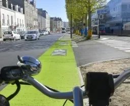 Le déploiement du marquage « Quand c’est vert c’est prioritaire » est lié à la création des Grandes voies vélo (GVV), ce réseau de 11 itinéraires cyclables, lisibles et sécurisés, reliant les 24 communes de Nantes Métropole. « Il n’y a que sur les GVV que l’on rencontre le marquage vert, une couleur qui s’inscrit dans la marque Naolib,