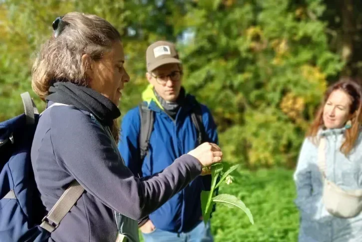 Lors de la balade, la découverte est sensorielle, on observe via une loupe de botaniste, on touche, on sent puis on goûte si c’est comestible. « Quand on parle de plantes médicinales ça ravive souvent les souvenirs des grand-mères, les gens retrouvent des savoirs perdus »,