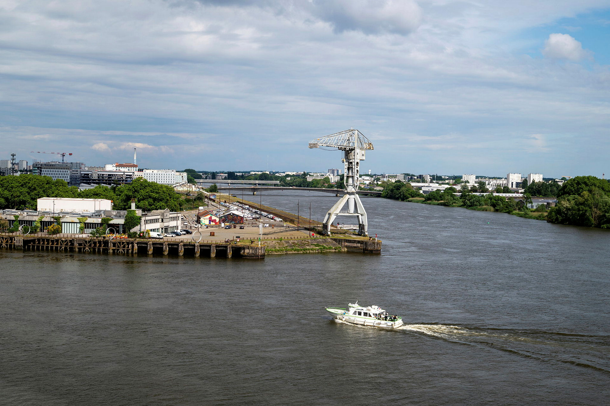 Sur la pointe ouest de l’Île de Nantes, une silhouette d’acier domine le fleuve depuis soixante ans, symbole d’une époque industrielle révolue. La grue grise est une icône importante du paysage portuaire nantais. Baptisée Titan, elle renvoie symboliquement à la mythologie grecque puisque les Titans sont les divinités primordiales nées de Gaïa (la Terre) et d’Ouranos (le Ciel).