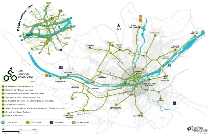 Le conseil métropolitain a adopté, le 12 février 2021, le nouveau Schéma directeur des itinéraires cyclables de Nantes Métropole. Il dessine la carte du futur réseau vélo métropolitain. Dès 2026, 50 kilomètres de voies magistrales lisibles et sécurisées seront créés.