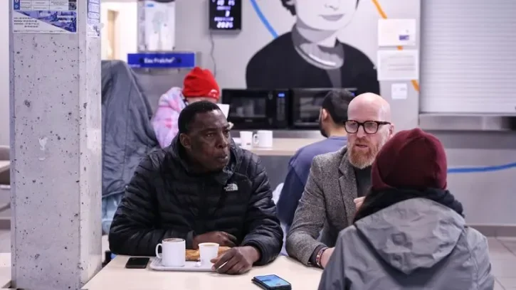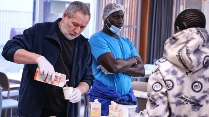 Mardi, 9h30. Une trentaine de personnes prennent leur petit-déjeuner dans la salle de restauration de l’espace Agnès-Varda, couvés du regard par un portrait de la cinéaste. Moudi, sans abri, démarre sa journée : « J’ai d’abord pris une douche, mon premier médicament (sourire) », indique cet habitué, attablé devant une demi-baguette beurrée, un café et un thé. Chaque jour, du lundi au vendredi, une centaine de petits-déjeuners sont ainsi servis à des personnes en situation de grande précarité et/ou d’isolement social.