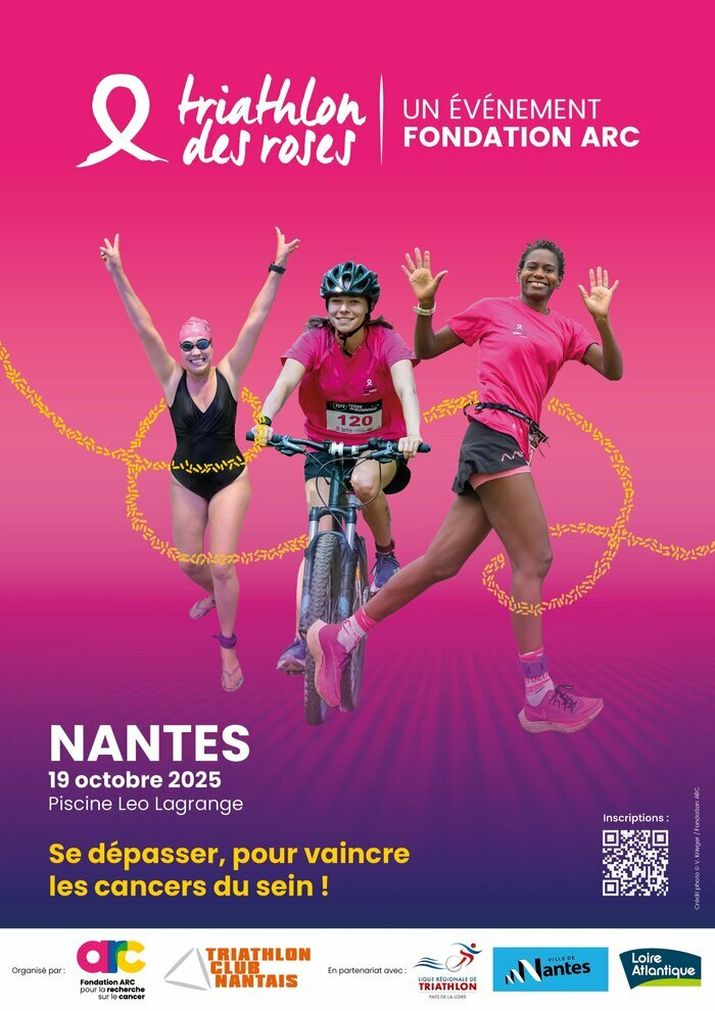 Co-organisé par la Fondation ARC pour la recherche sur le cancer et le Triathlon Club Nantais, le Triathlon des Roses est un événement sportif de collecte dédié à la recherche sur les cancers du sein à l’occasion d’Octobre Rose.